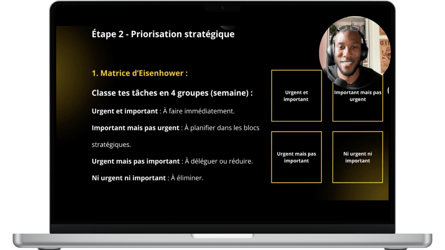 2 à 3 heures par semaine suffisent pour suivre la Roadmap Digitale et progresser. Tu peux avancer à ton rythme, mais si tu veux des résultats rapides, nous te guidons pour concentrer tes efforts.